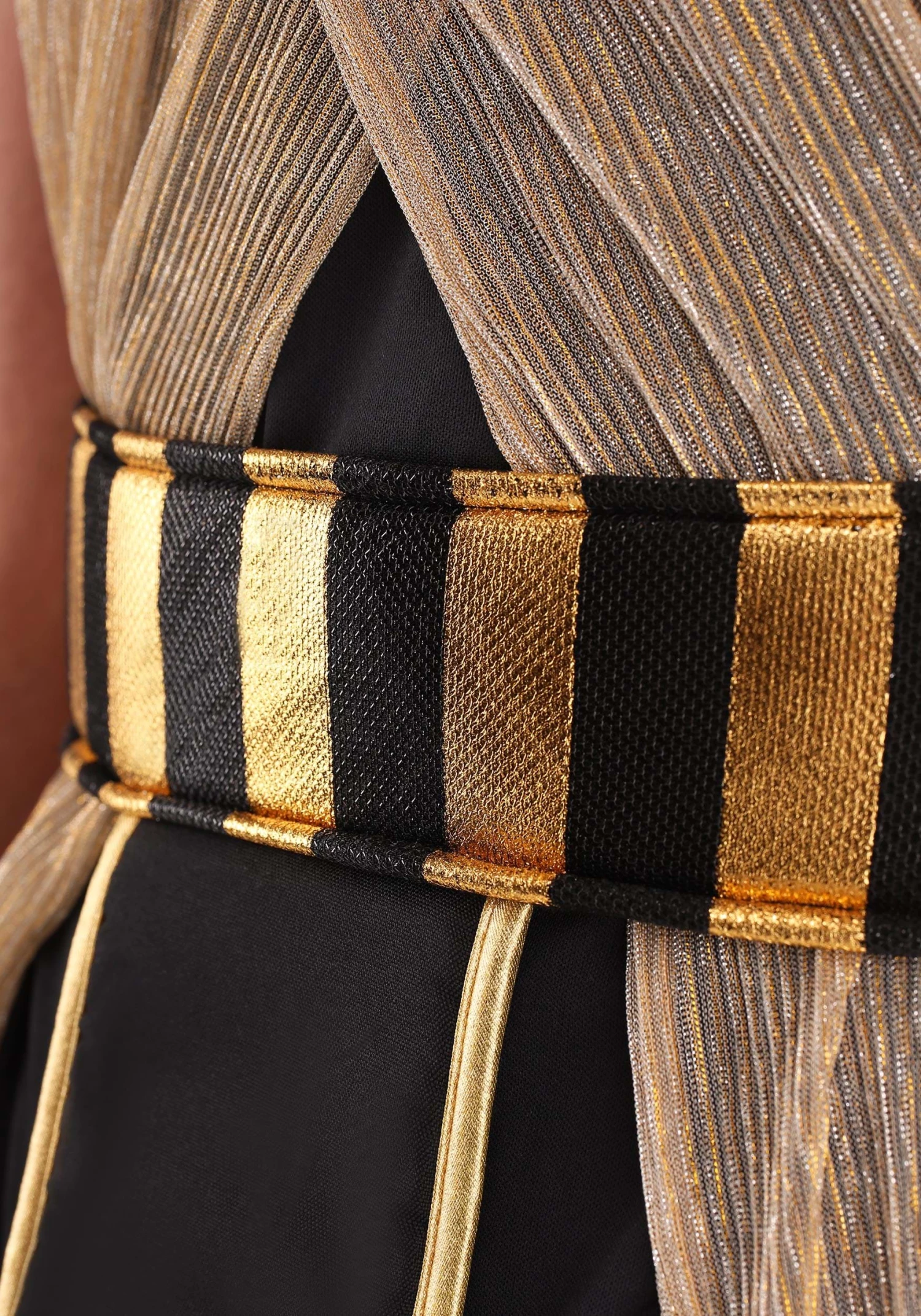 - Main body: 100% polyester, sleeves: 56% metallic, 44% polyester, cape: 95% nylon, 5% metallic fabric & knit mesh