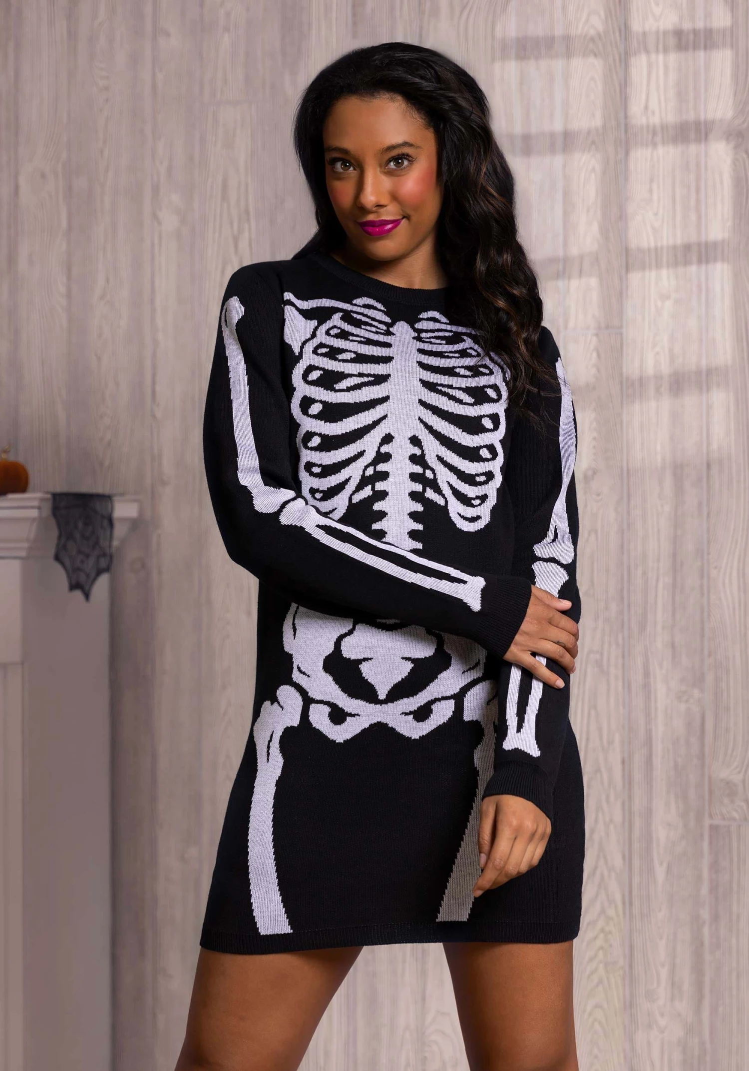 This is an exclusive Women’s Skeleton Loose Fit Sweater Dress.